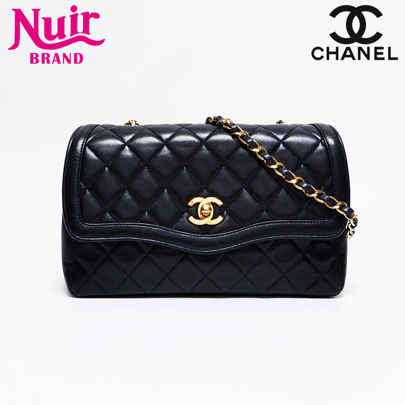 極美品 シャネル CHANEL 1番台 1989-1991マトラッセ ラムスキンポーチ付き ショルダーバッグ ネイビー WS21791