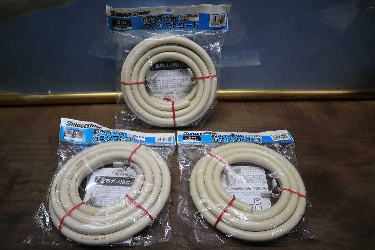 | 都市ガス用新 ガスソフトコード 3m(内径9.5mm) バンド付 3個セット 即決価格 | |||