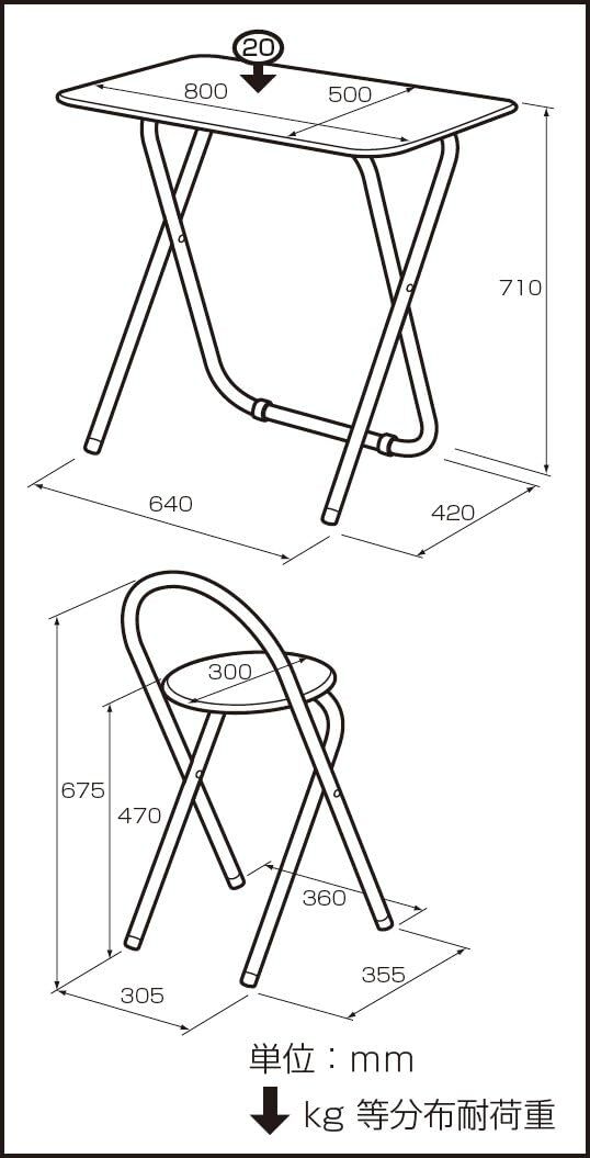 デスク:W80×D50×H71cm、チェア:W36×D41×H67.5cm