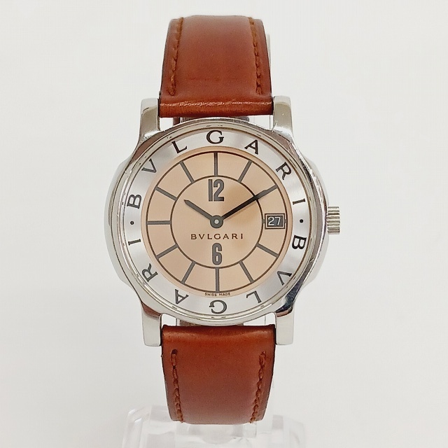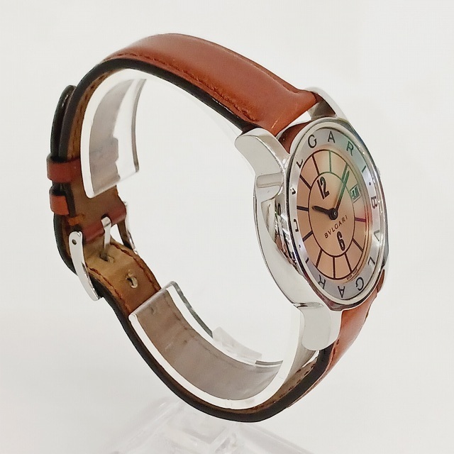 ブルガリ BVLGARI ソロテンポ Solotempo 時計 腕時計 ST35S シルバー オレンジ ピンク文字盤 レザー 茶 ブラウン ☆AA★ メンズ