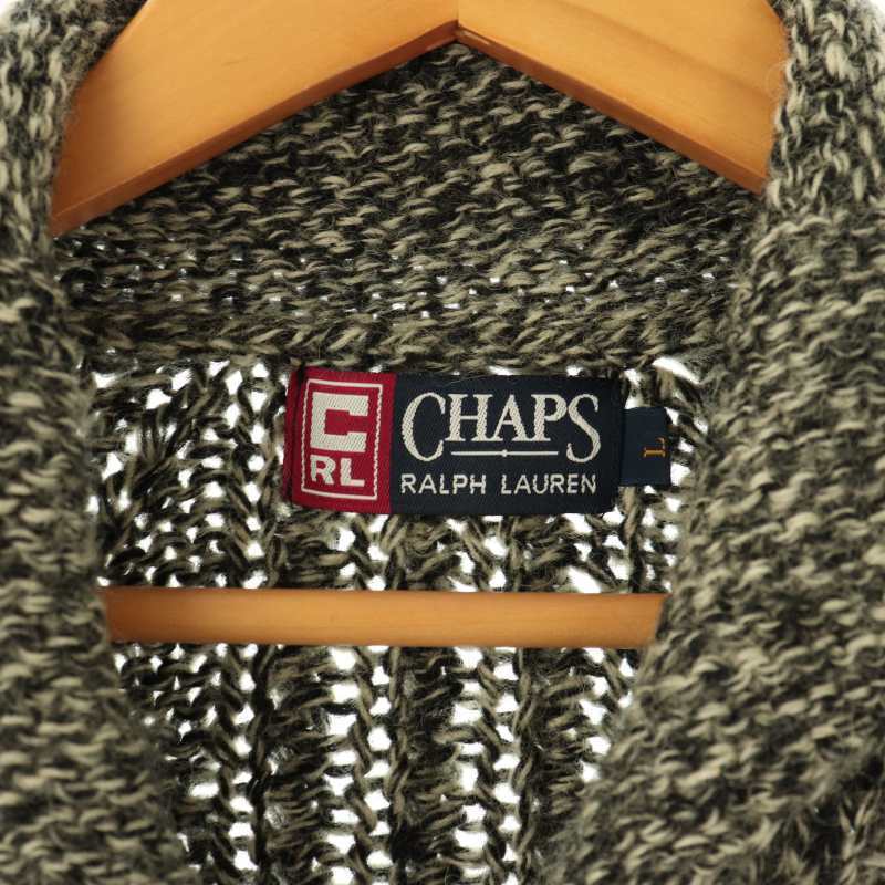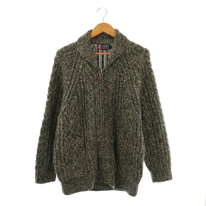 チャップス CHAPS ラルフローレン カウチン ケーブル ニット ジャケット ジップアップ ショールカラー ウール L グレー