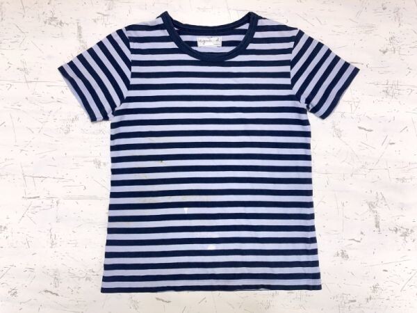 アニエスベー agnes b. ボーダー フレンチカジュアル チビT 半袖Tシャツ レディース コットン100% XS 青