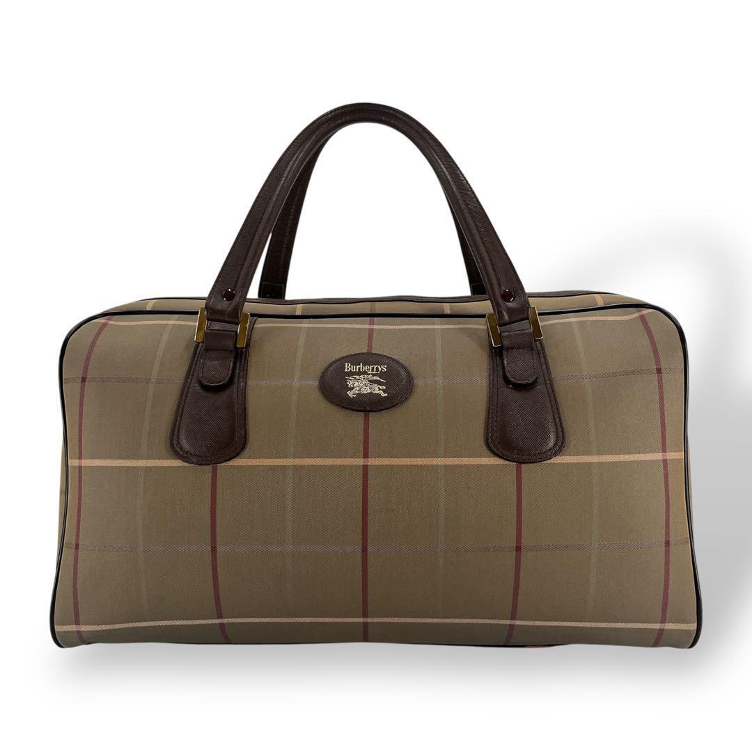 Burberrys ヴィンテージ ビンテージ トラベルバッグ 大容量 ペンチェック ノバチェック ゴールド金具 ブラウン ナイロン レザー