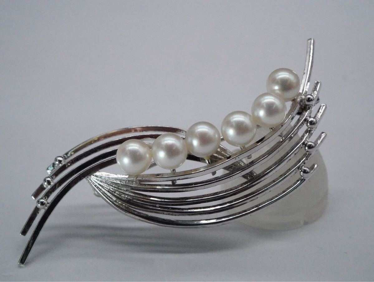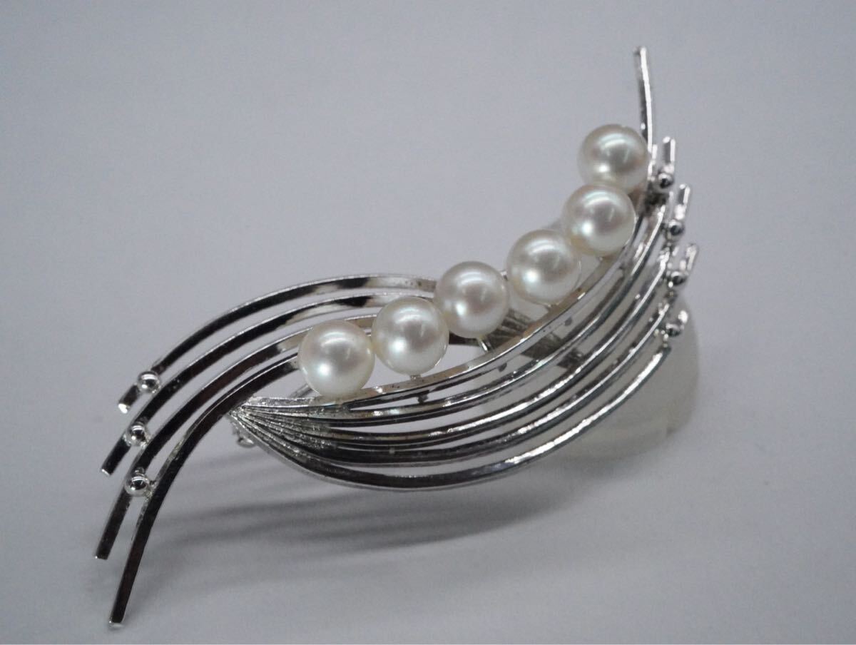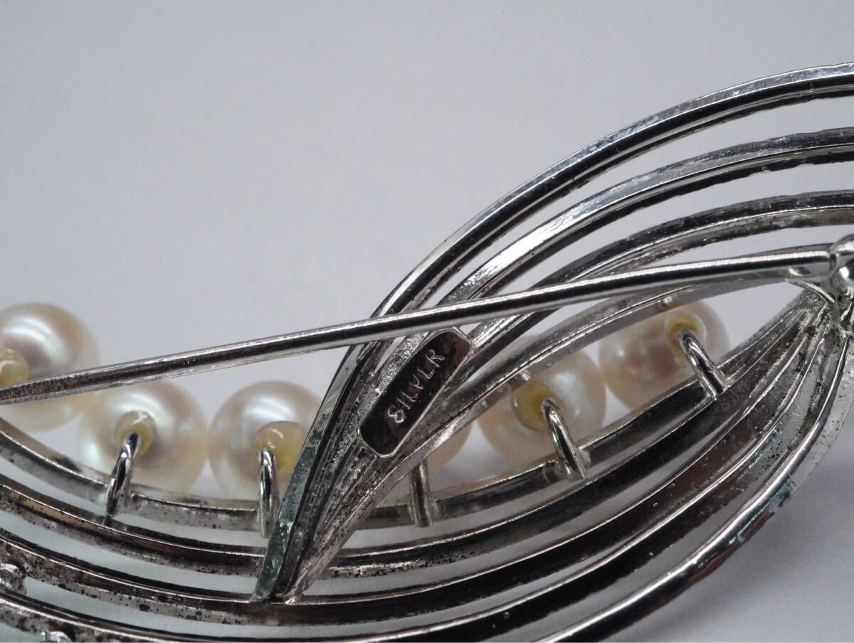 【175】本真珠 パール SILVER シルバー ブローチ アクセサリー TIA