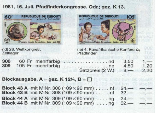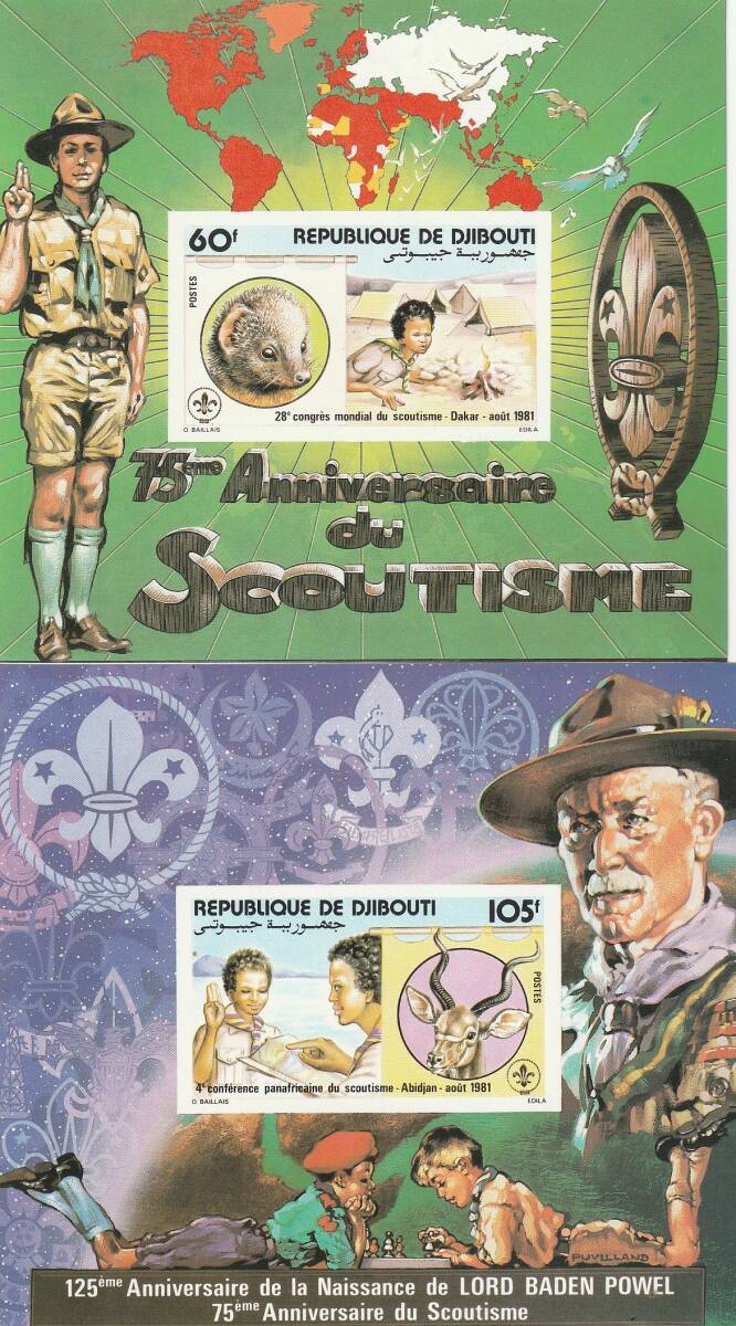 (ジブチ)1981年ボーイスカウト2種完無目打ち小型シート、マイケルカタログ評価64ユーロ(海外より発送、説明欄参照)