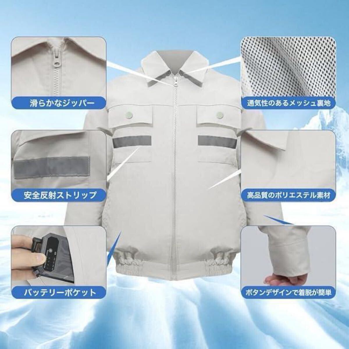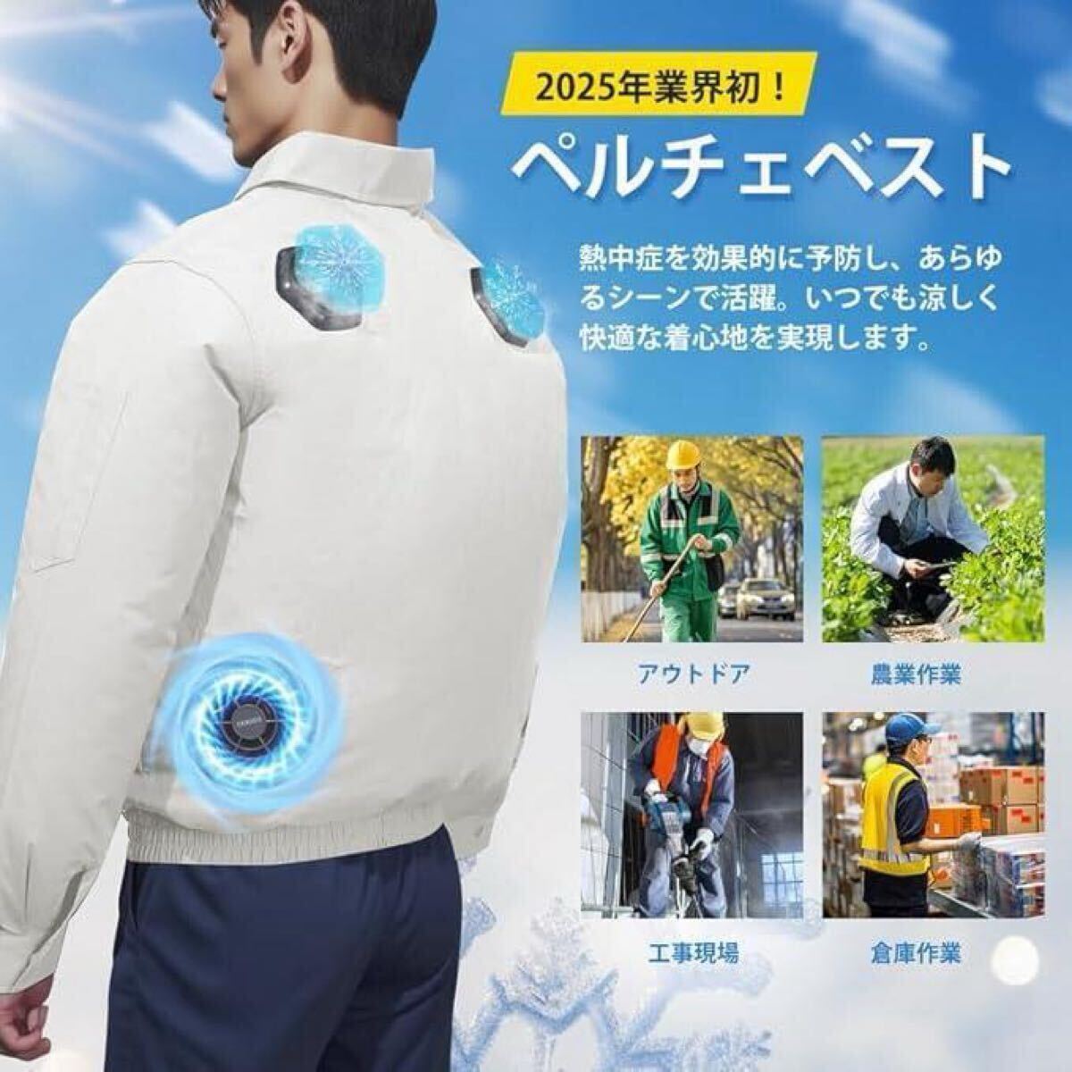 【高速冷却技術】業界最新の半導体製氷シールを採用した空調作業服。わずか3秒で急速冷却。暑さ対策に最適な性能を実現します。 【高品質素材と実用性】耐久性に優れた高品質生地を使用。反射シール付きの胸ポケットを2つ装備し、安全性と収納性を兼ね備えた空調冷却服です。 【多様な使用】シーン農業、倉庫作業、建設現場、釣りなど、あらゆる環境で活躍する空調服。空調作業服として、暑い季節の作業効率を大幅に向上させます。
