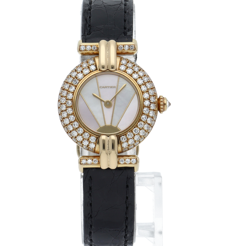 カルティエ マストコリゼSM ウォッチ ダイヤベゼル シェル WB104131 内箱 K18YG/革 レディース時計 ホワイトシェ