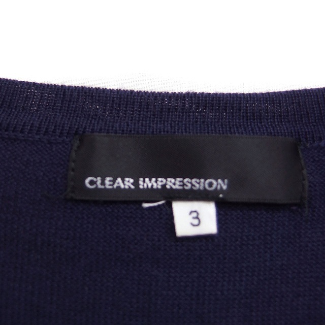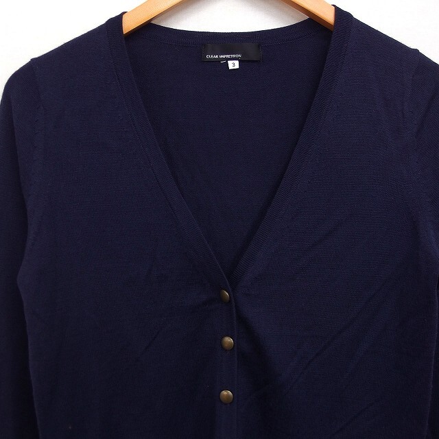 クリアインプレッション CLEAR IMPRESSION ニット カーディガン Vネック 無地 ウール混 3 ネイビー 紺 /FT7 レディース