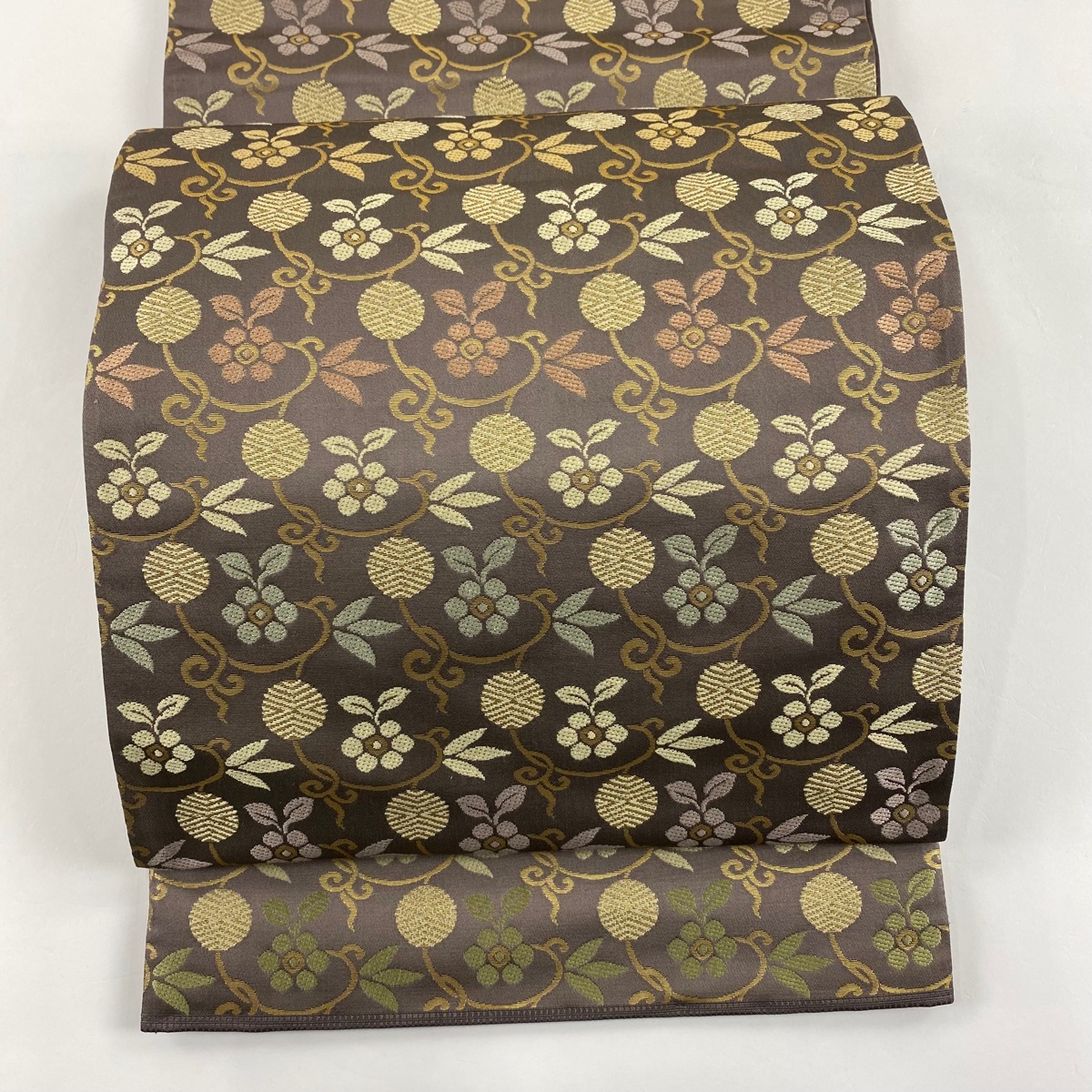 | 袋帯 美品 名品 笹蔓 箔 灰茶 六通 正絹 【中古】 |