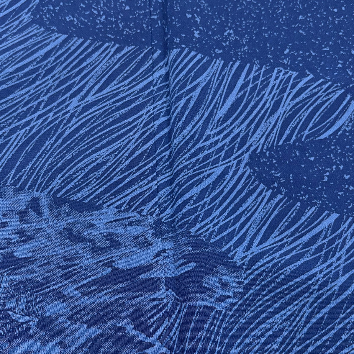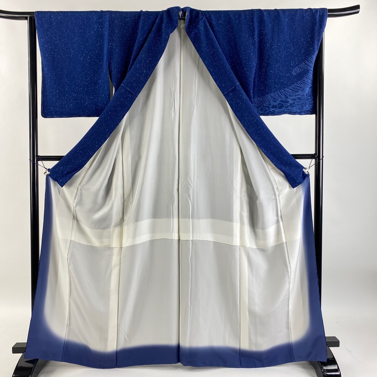 | 付下げ 秀品 波 霞 縮緬 青 袷 身丈166 裄丈65 M 正絹 【中古】 |