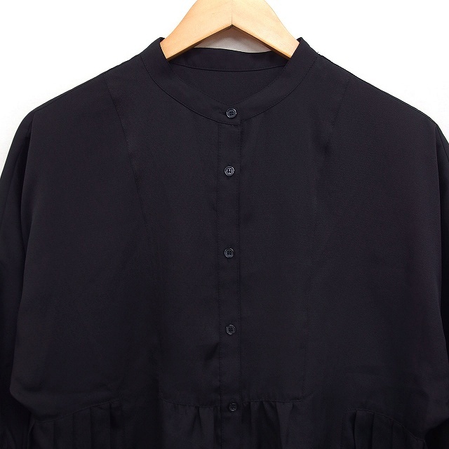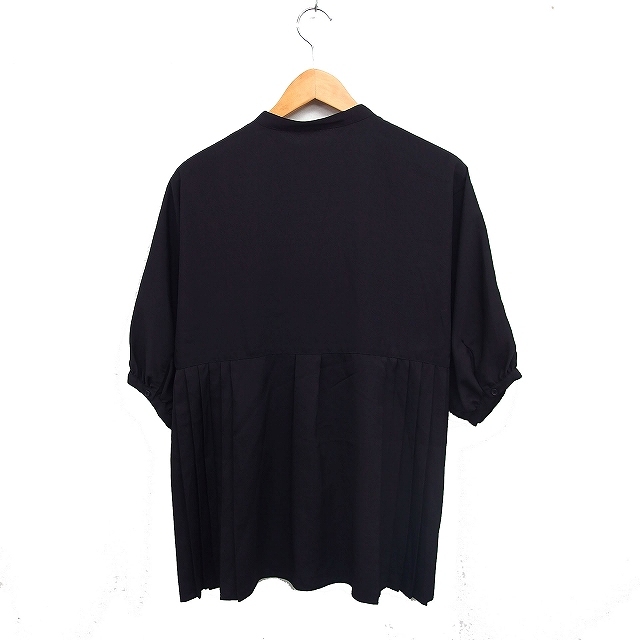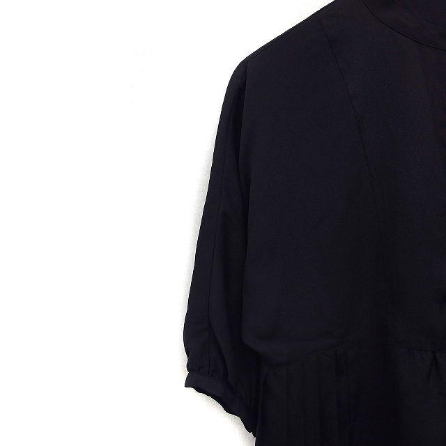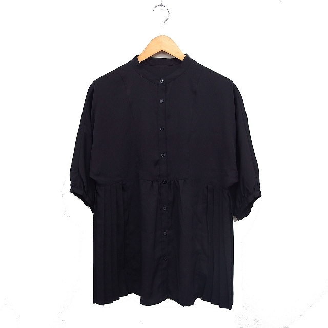 アー・ヴェ・ヴェ ミッシェルクラン a.v.v サイドプリーツ シャツ ブラウス 5分袖 バンドカラー 無地 M ブラック 黒 /FT14 レディース