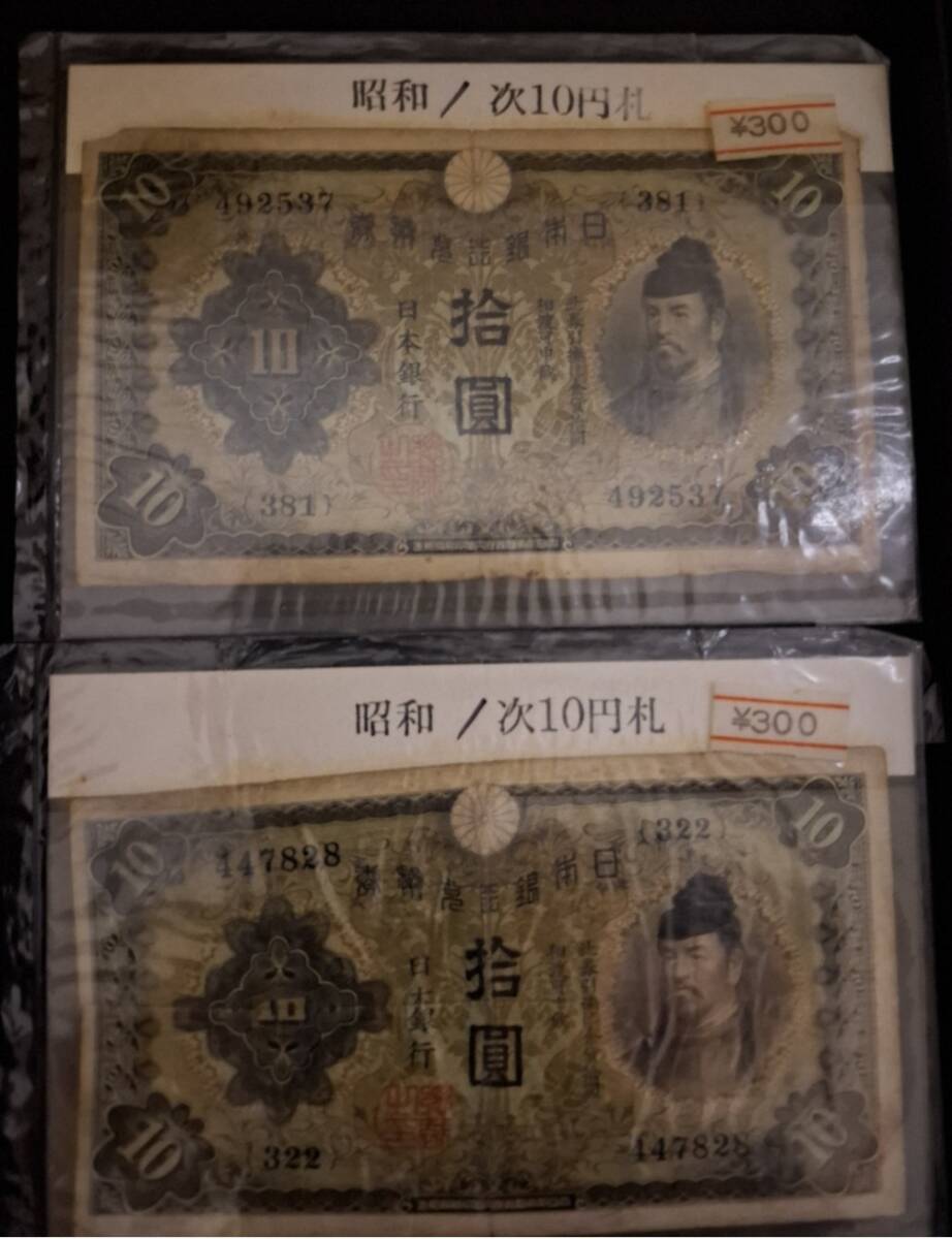 【貴重・袋保管品2点】旧紙幣 古紙幣 日本銀行兌換券 和気清麻呂 10円札 和気清麿 十円札 拾円札 10円札
