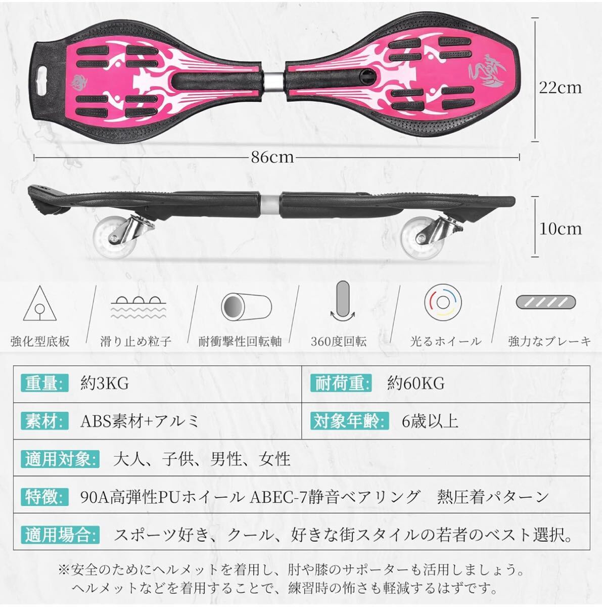 ブレイブボードのサイズ:86*22*10CM 重量:約3KG 耐荷重:約60KG 複数の滑り止め粒子のデザインは、より高い滑り止め力を提供します。ブレボーのパターンは特別の「熱転写技術」で印刷され、はっきりしていて、長く時間で色褪せないです。