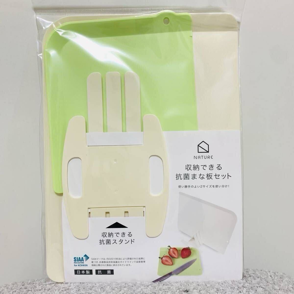 使い分けできるサイズの違う2枚の抗菌まな板とまな板スタンドのセット。