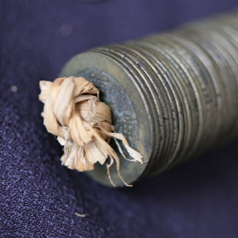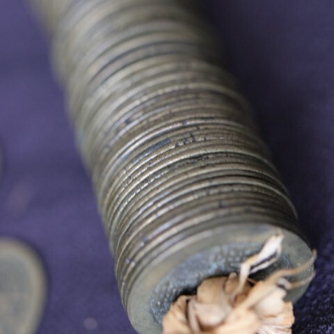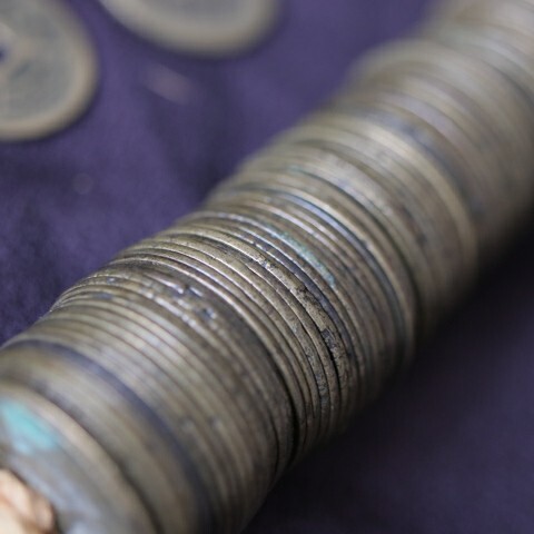 古銭保管時に特有の青カビ青錆のような付着物もございます