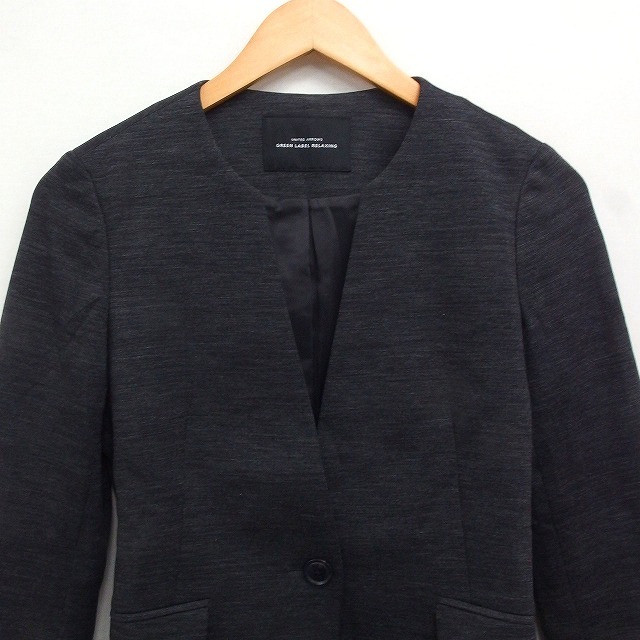 グリーンレーベルリラクシング ユナイテッドアローズ green label relaxing ノーカラー ジャケット 1ボタン 36 チャコール /FT レディース