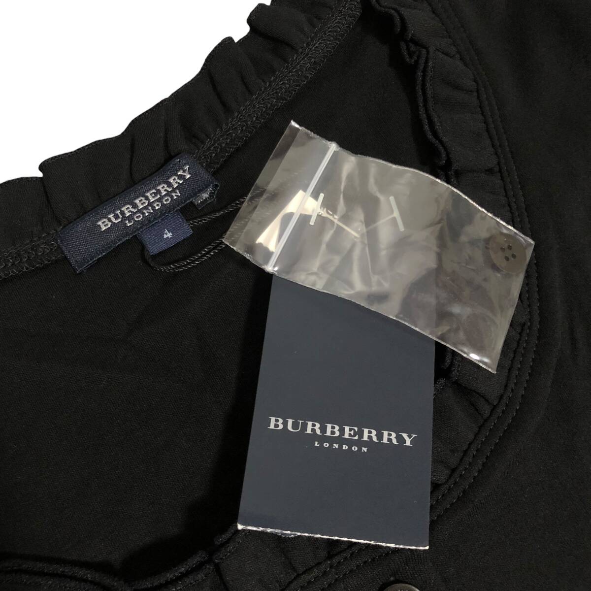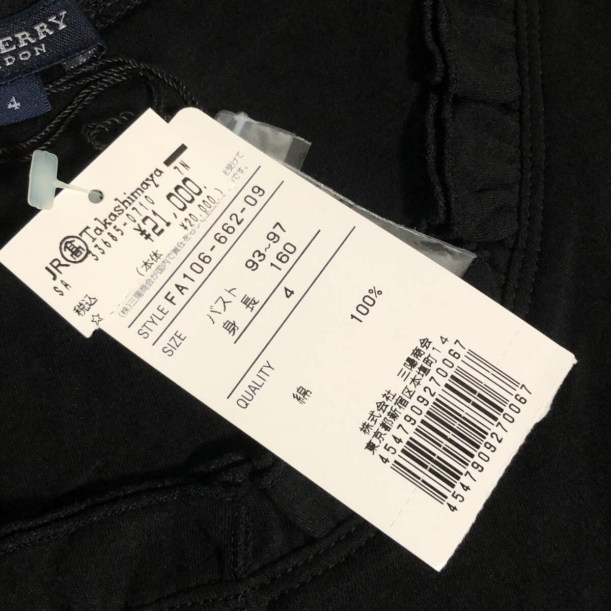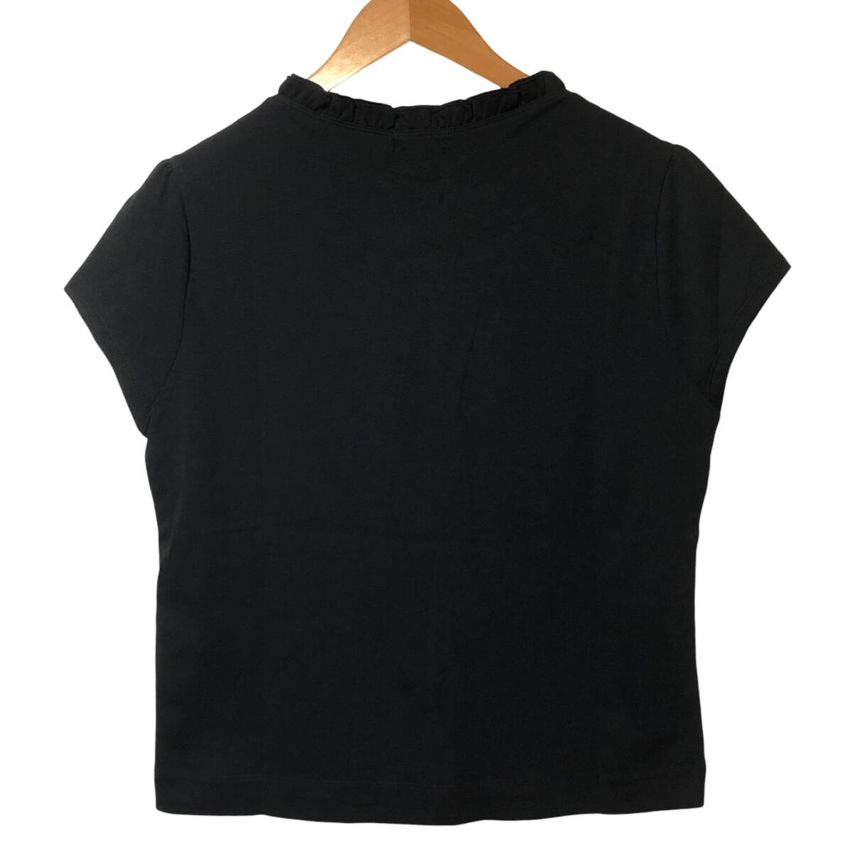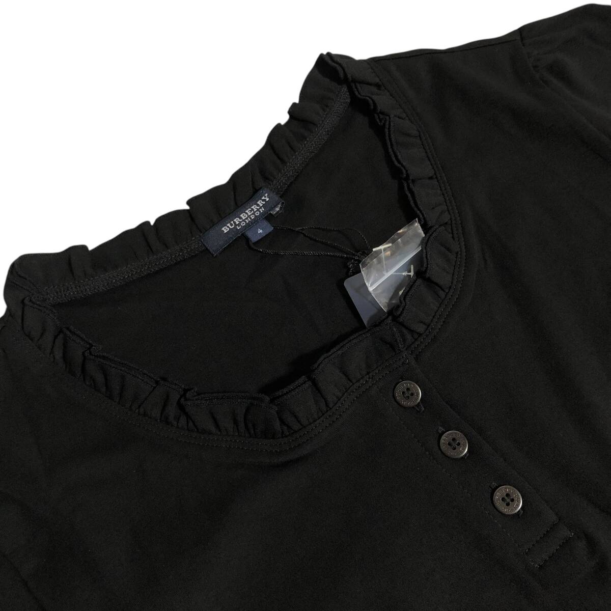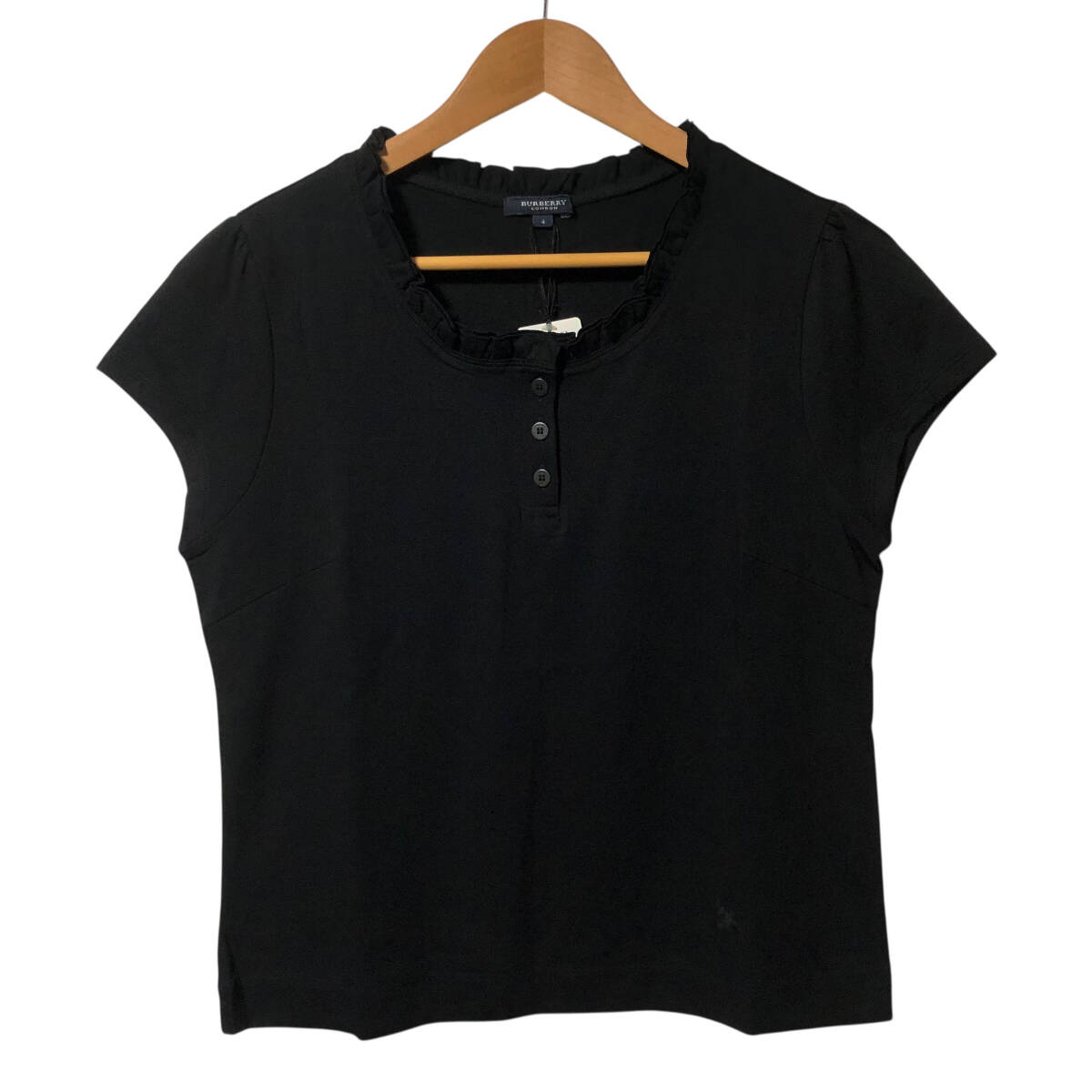 BURBERRY バーバリー フリル カットソー 半袖 Tシャツ 4 黒 ホース刺繍 ストレッチ レディース A4