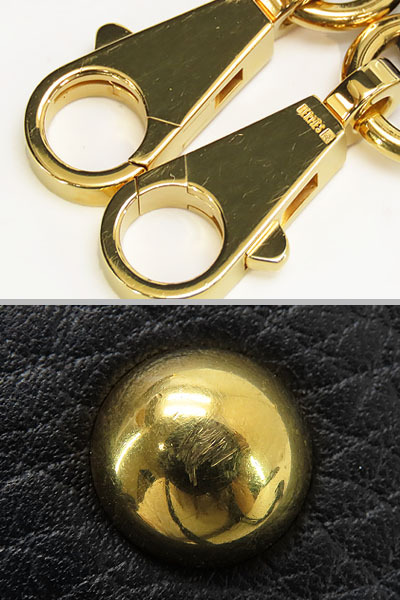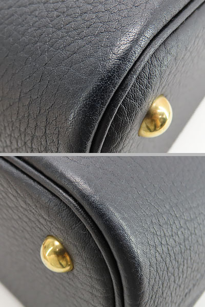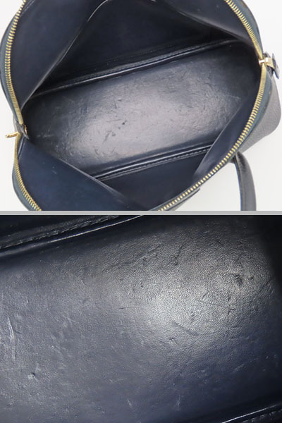| 商品状態 | 外側にカメラに写らない程度のわずかな薄スレ、ハンドルのコバに割れ、内側にスレや薄キズ・へこみ、底鋲金具若干の薄キズや小キズ、金具類にわずかな薄キズがございますが、外観の綺麗なお品物になります。 |