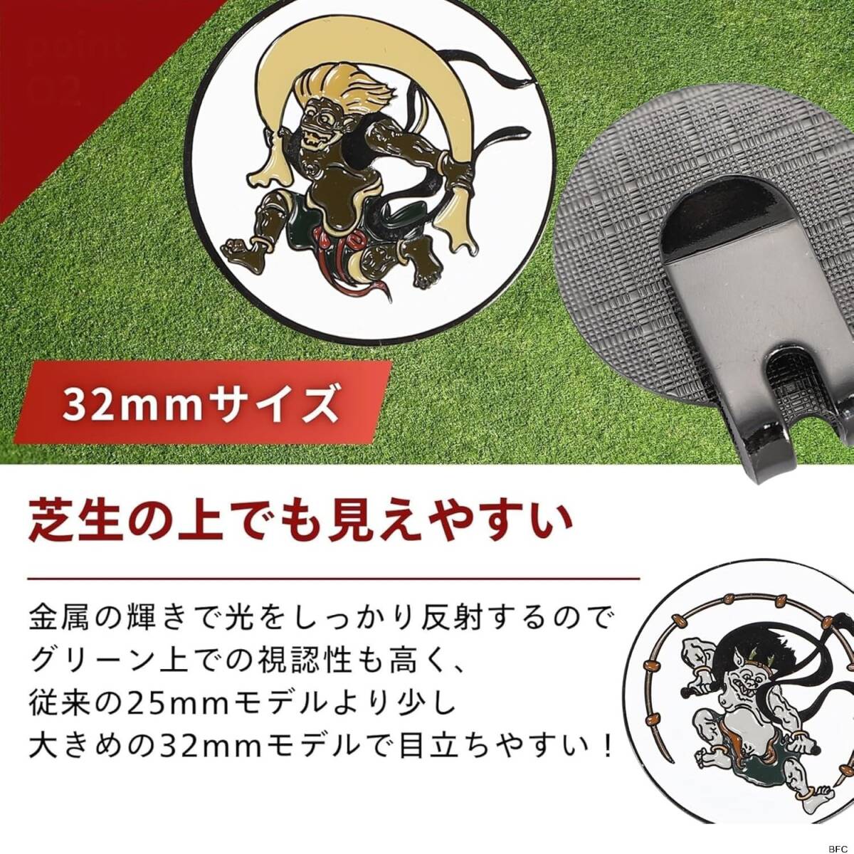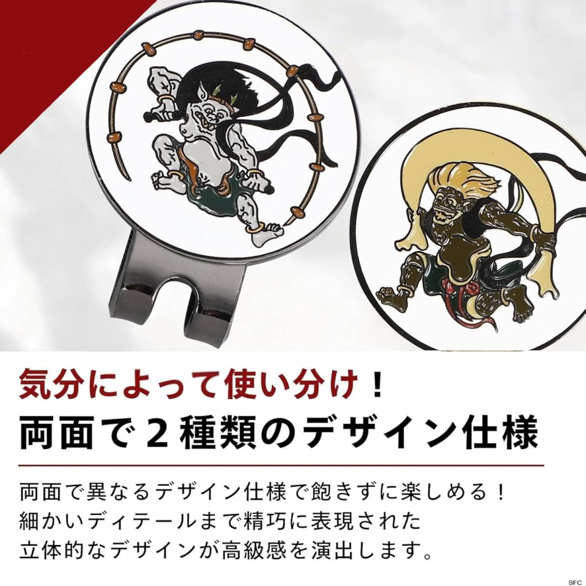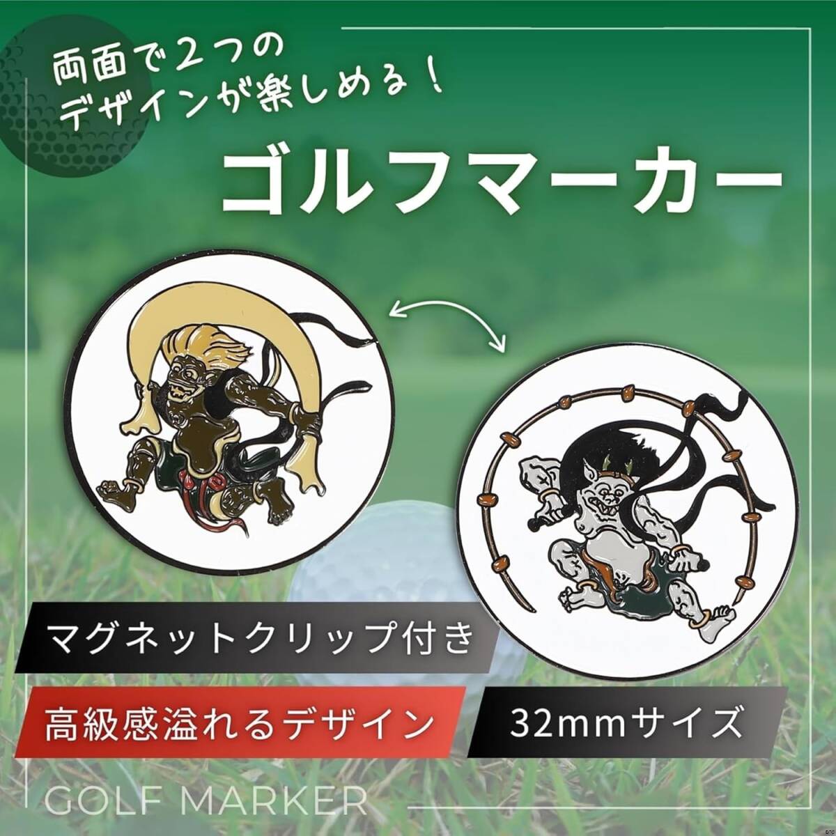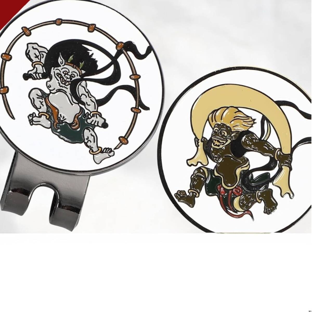クリップマーカー 風神 雷神 32mm 送料無料 ゴルフ用品 リバーシブル オシャレ 目立つ ギフト チップマーカー マグネット