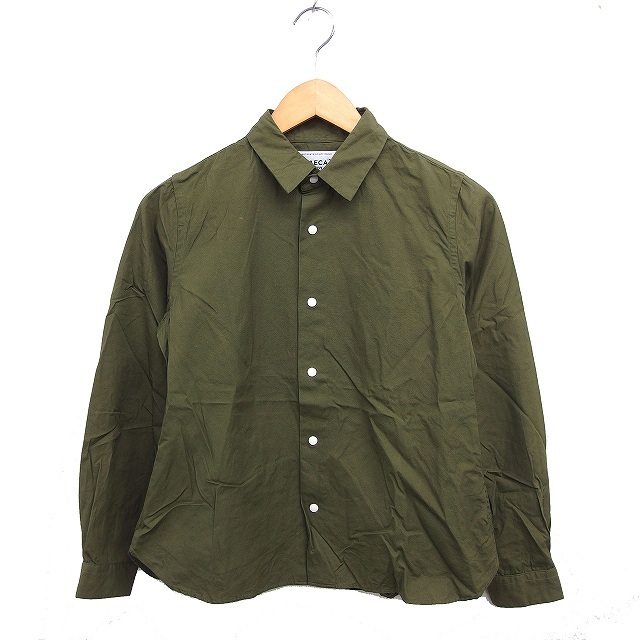 ヤエカ YAECA コットン シャツ ブラウス 長袖 無地 S オリーブ /FT45 レディース