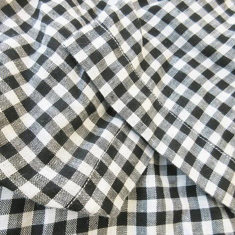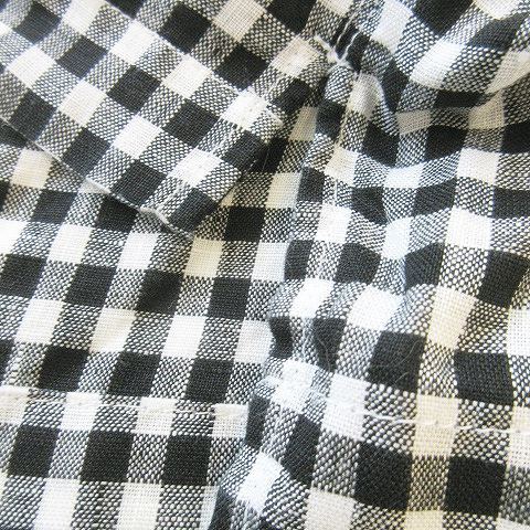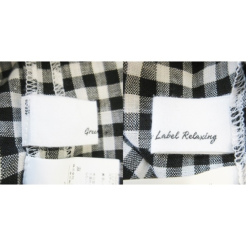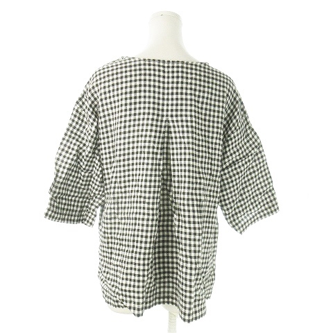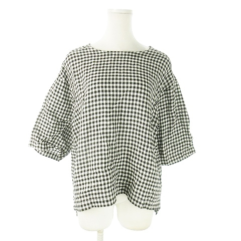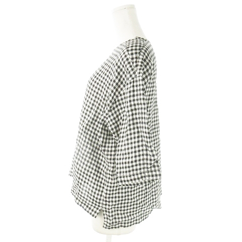 グリーンレーベルリラクシング green label relaxing リネンブラウス カットソー ラウンドネック 七分袖 麻 ギンガムチェック 総柄 黒