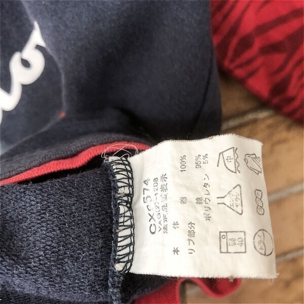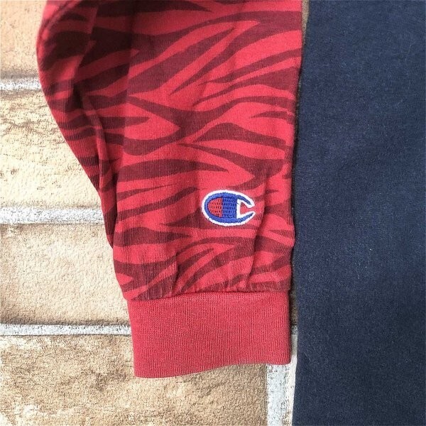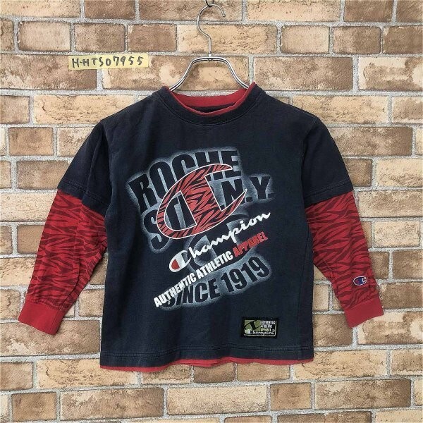 champion チャンピオン キッズ 定番 ロゴ プリント 重ね着風カットソー ロンT 長袖Tシャツ 紺 × 赤