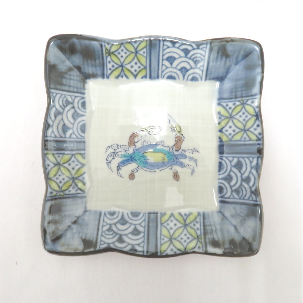 九谷焼 食器 九谷泉峯 銘々皿 皿揃 小皿 角皿 5枚組 絵変わり 魚 海老 蟹 箱有