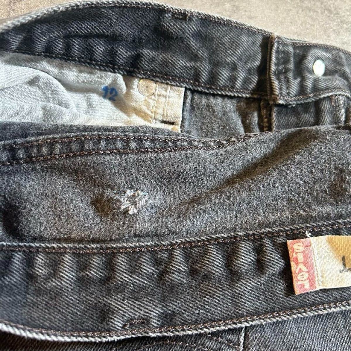 ベルトループ内側にリペア、スレーキにペン跡、デニム地特有の色落ちやアタリがみられます。
