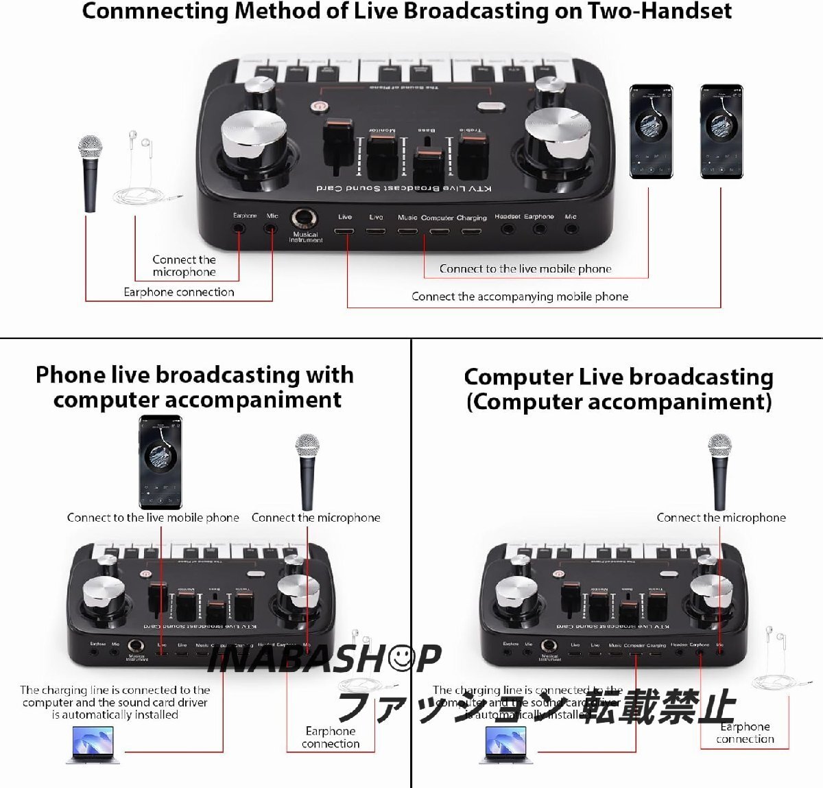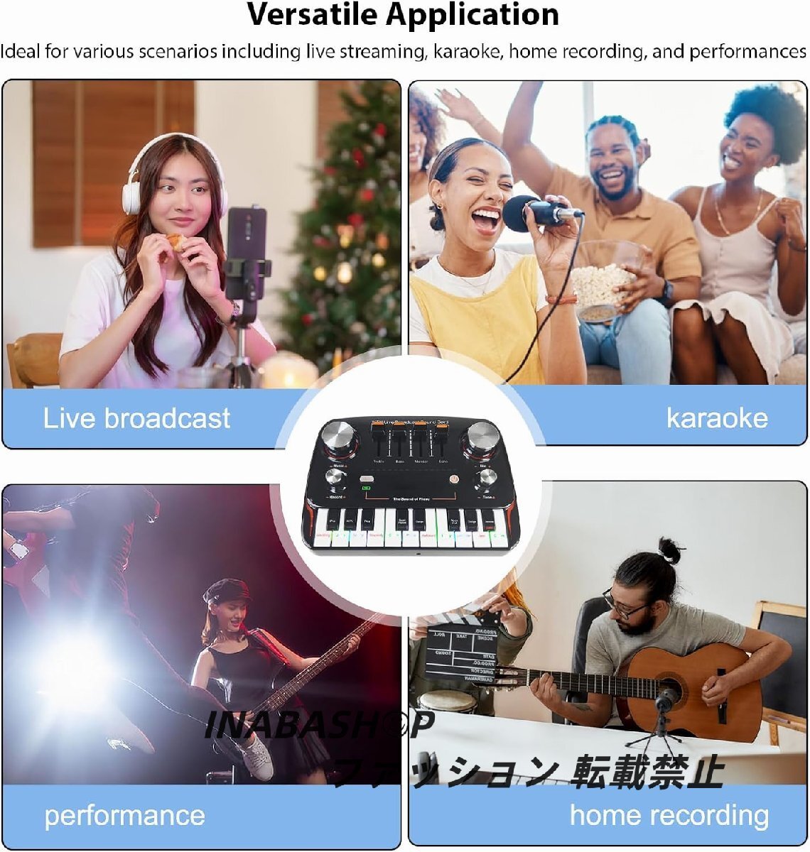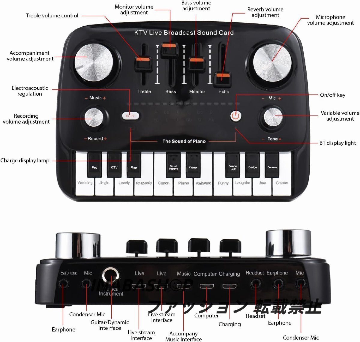 ボイスチェンジャー ライブサウンドカード ピアノ形状 オーディオ録音 デスクトップ 歌唱 BT 伝送 プラグアンドプレイ ストリーミング