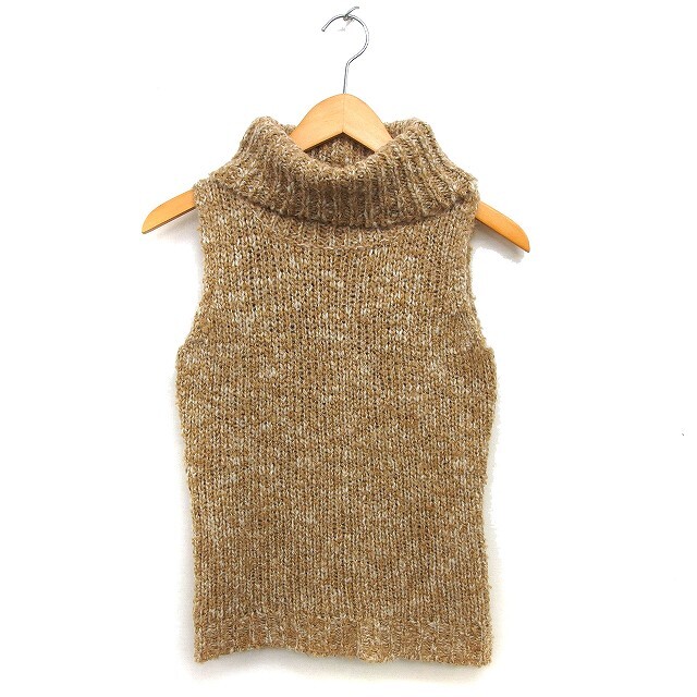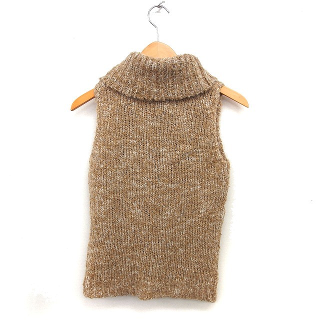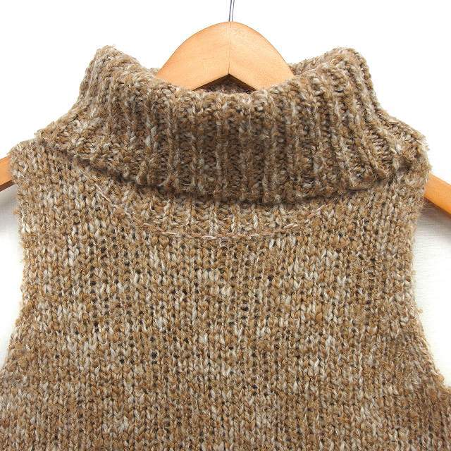 クイーンズコート QUEENS COURT オフタートル ニット ベスト ウール混 メランジ プルオーバー 2 茶 ブラウン /NT33 レディース