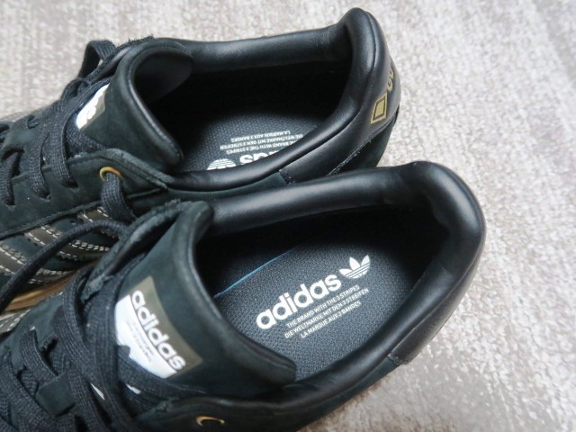 ブラックでまとめたアッパーはヌバックで仕立て、サイドのスリーストライプスはレザー、ヒールタブには機能性をアピールするように"GORE-TEX"ロゴを刻印。