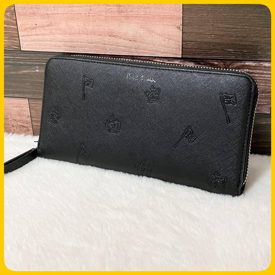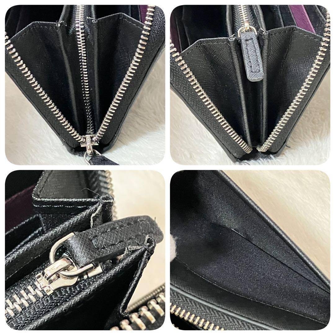美品 Paul Smith ラウンド ジップ 長財布 ポールドローイング 黒 紫