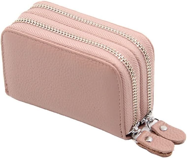 財布 カードケース 本革 じゃばら ダブルファスナー スキミング防止 大容量 ラウンドファスナー 小銭入れ付き メンズ レディース (ピンク)
