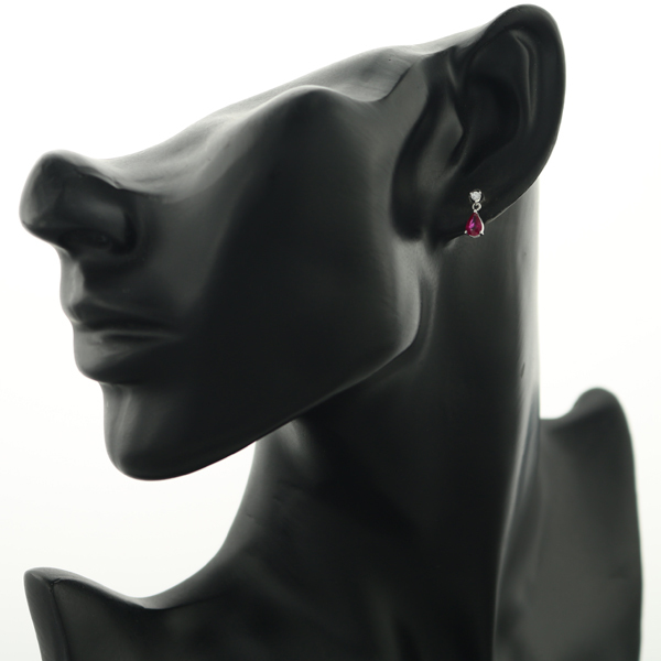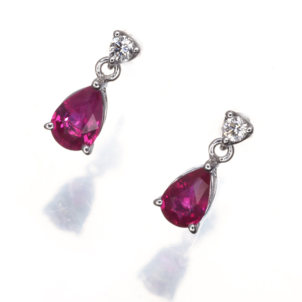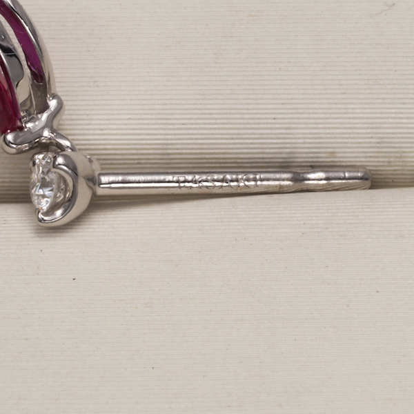 上質メレダイヤの下部で揺れ煌めくティアドロップフォルムのルビー。眩いテリを披露する2石は色鮮やかなピンキッシュレッドの美しい輝きを見せてくれますよ。 |