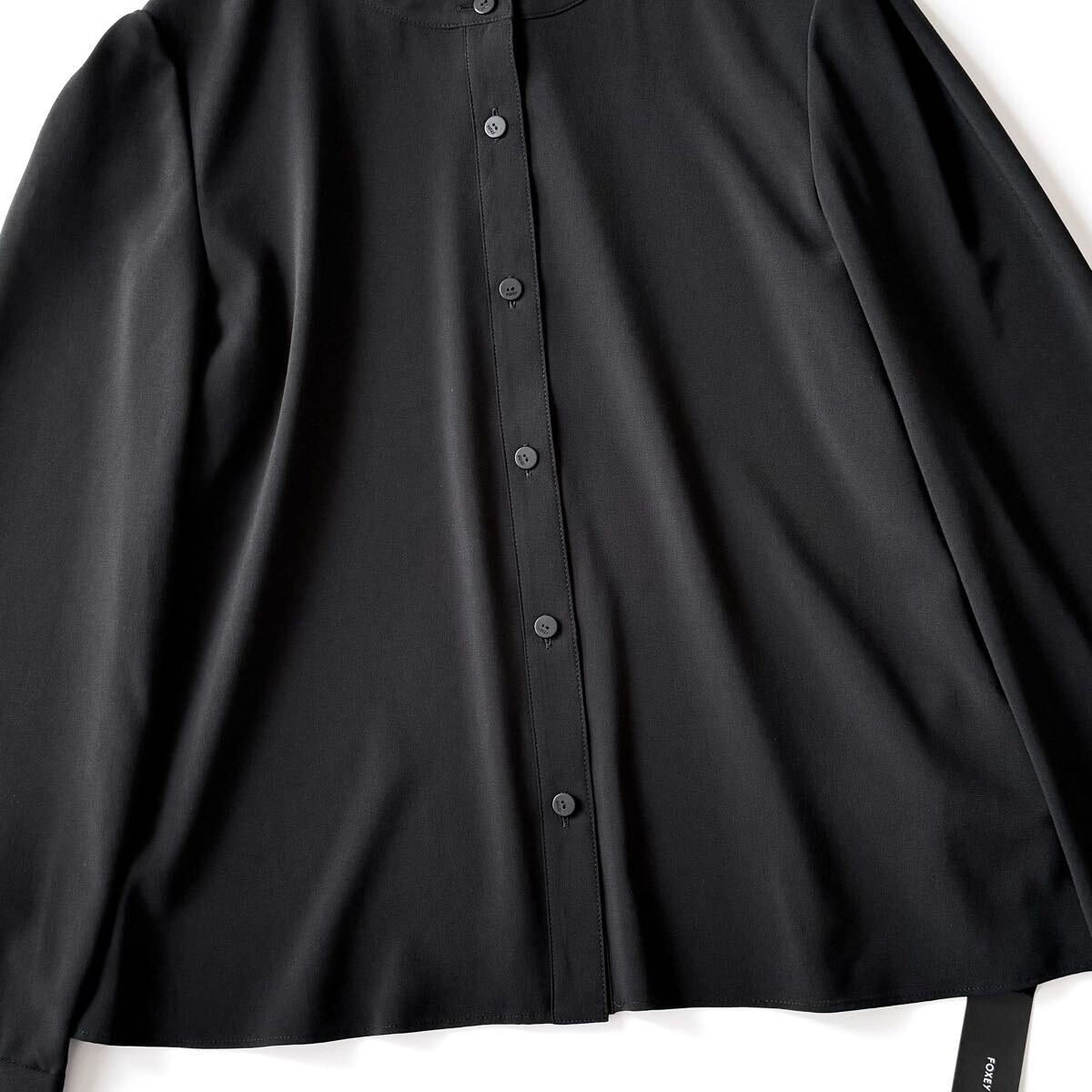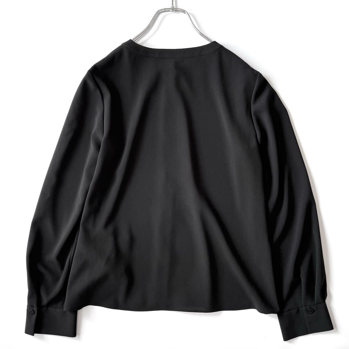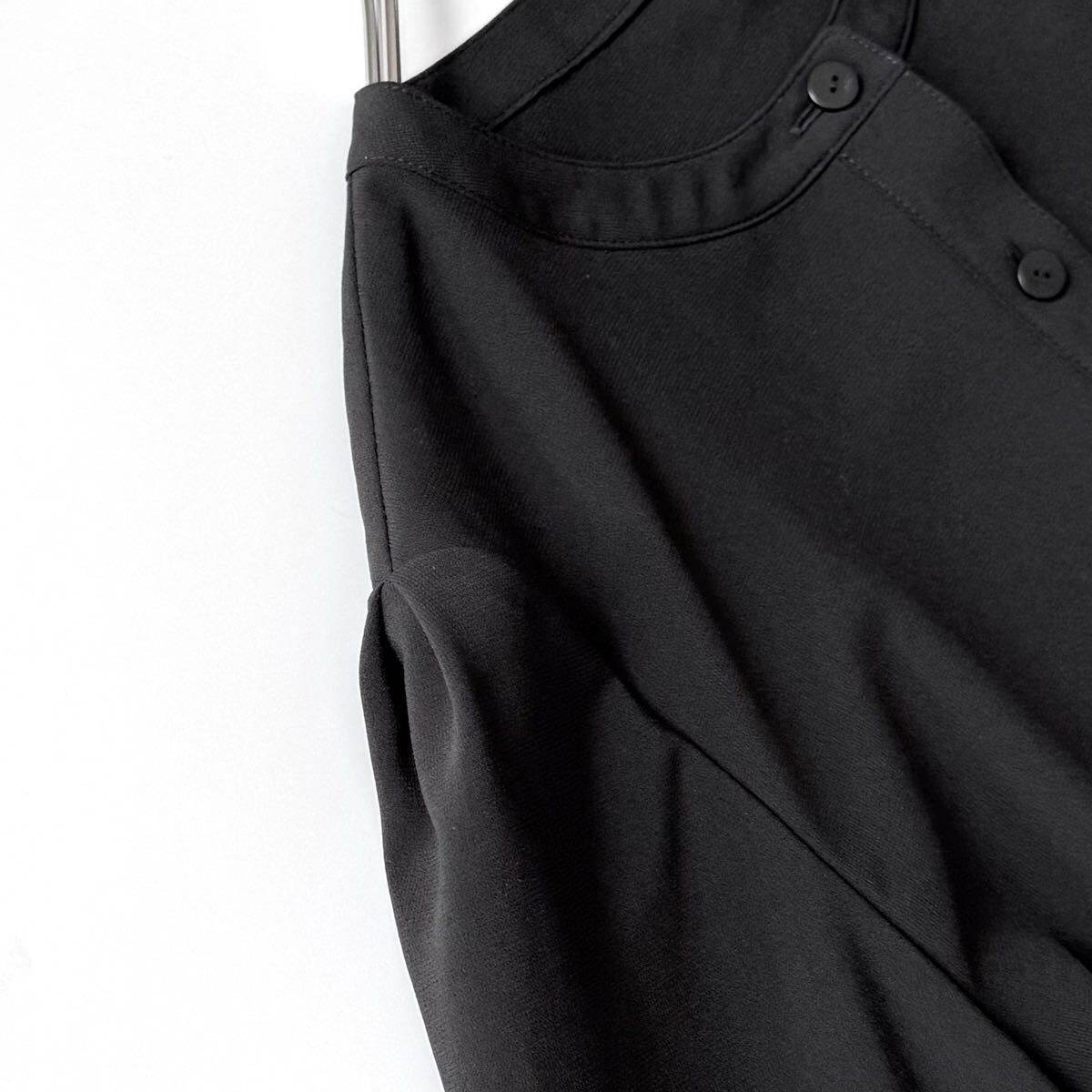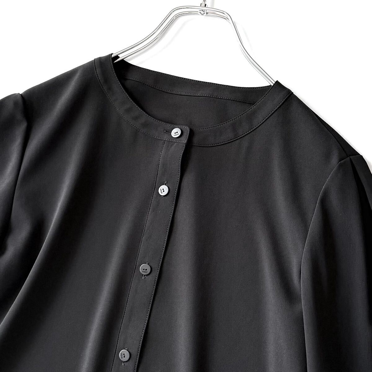 黒 ブラック black シャツ ノーカラー バンドカラー トップス カーディガン 羽織り 長袖 通年 トロみ ドレープ カジュアル フォーマル 現行 近年 レディース ウィメンズ 婦人服