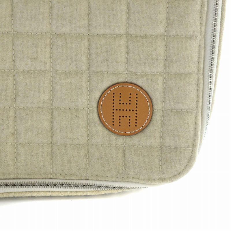 エルメス HERMES パドック ポーチ トラベルケース パッキング ロゴ 羊毛 カシミヤ混 アイボリー ■GY17 /MQ ■OH レディース