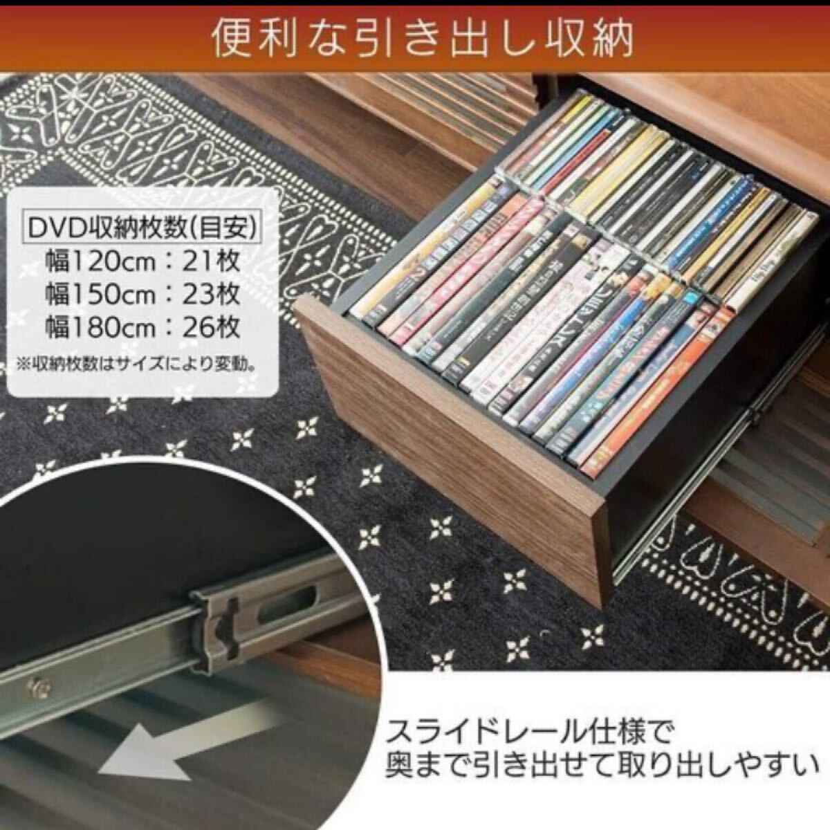引き出しはDVDやCDを横に収納でき、スライドレール仕様で奥まで引き出せて取り出しやすい設計です。