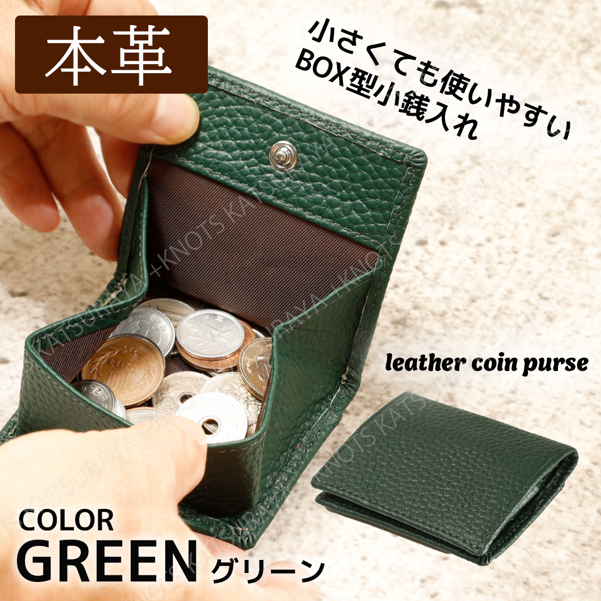 本革 BOX型小銭入れ★グリーン緑★コインケース ミニ財布 小さい財布 小型財布 レディース メンズ 牛革 レザー ボックス コンパクトa429