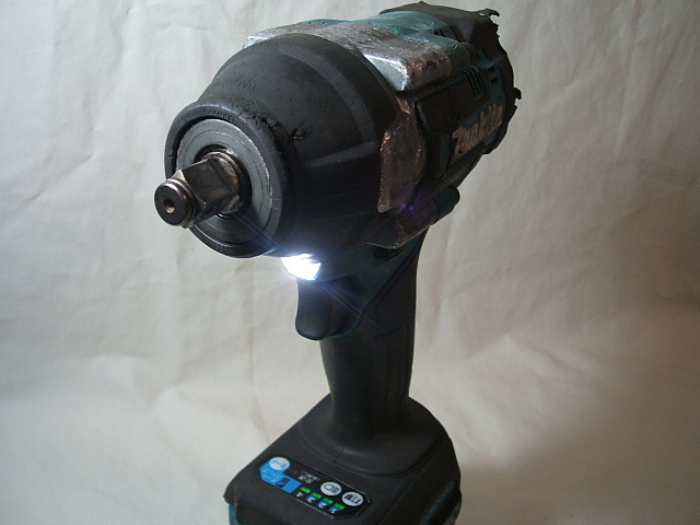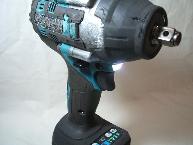 動かないジャンクということで入手したものですが、手持ちのバッテリーをつけてみましたら通電して回転動作しました。ごく短時間の確認のみですが、今のところ両方向回転しましてライトつきました。モード切替ボタンききました。外観傷や破損が大変多いです。その他詳細は未確認です。