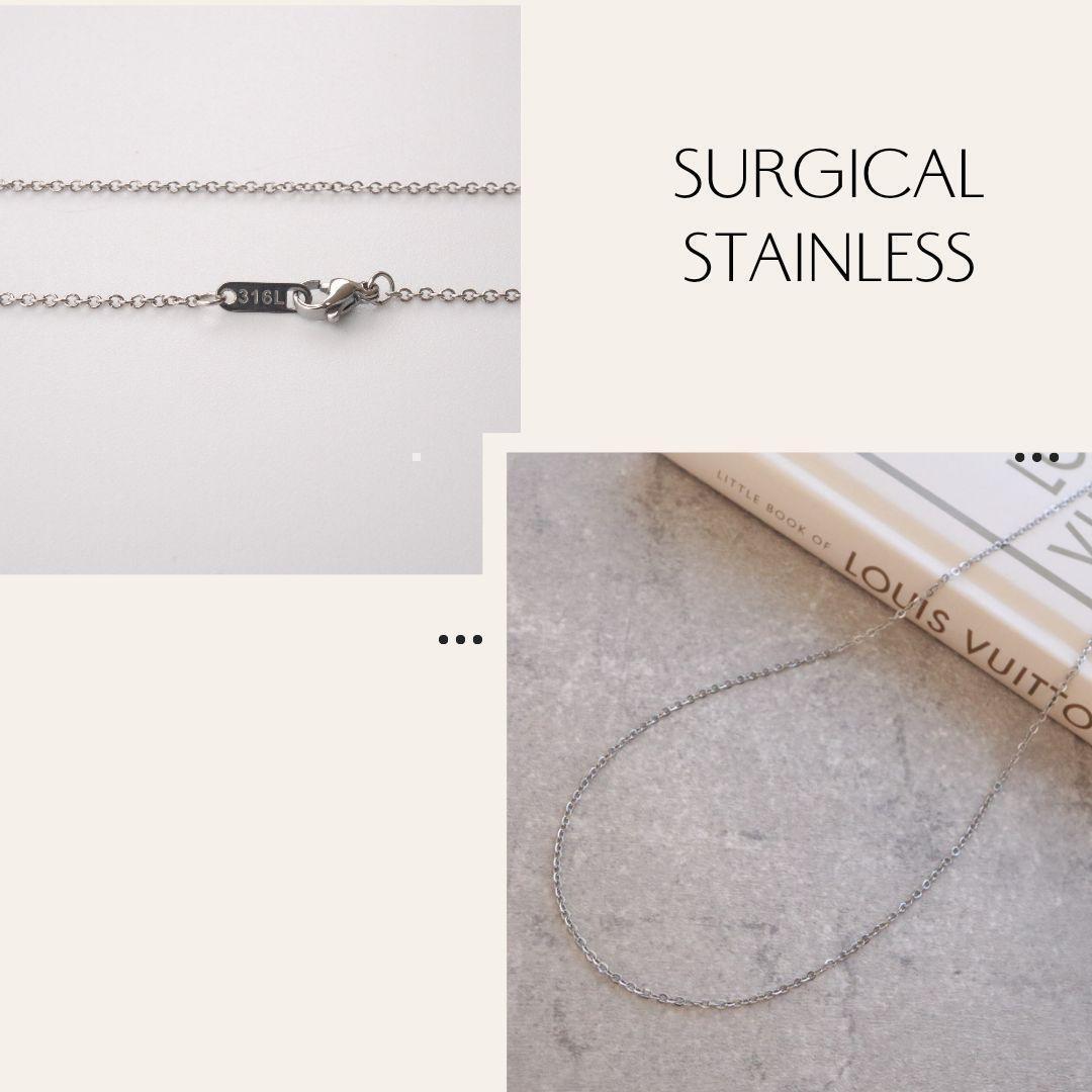 医療用にも使用されるサージカルステンレス(316L)になります。金属アレルギーの方におすすめで変色しにくくさびにくく丈夫です。