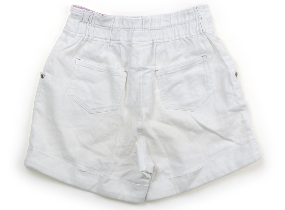 ポリウレタン混のポリエステルコットン地。サイズ調整ゴムが付いています。前ファスナー開き。前身頃の裾に黒いすす汚れがあります。お手入れ次第でまだお使い頂けそうです。