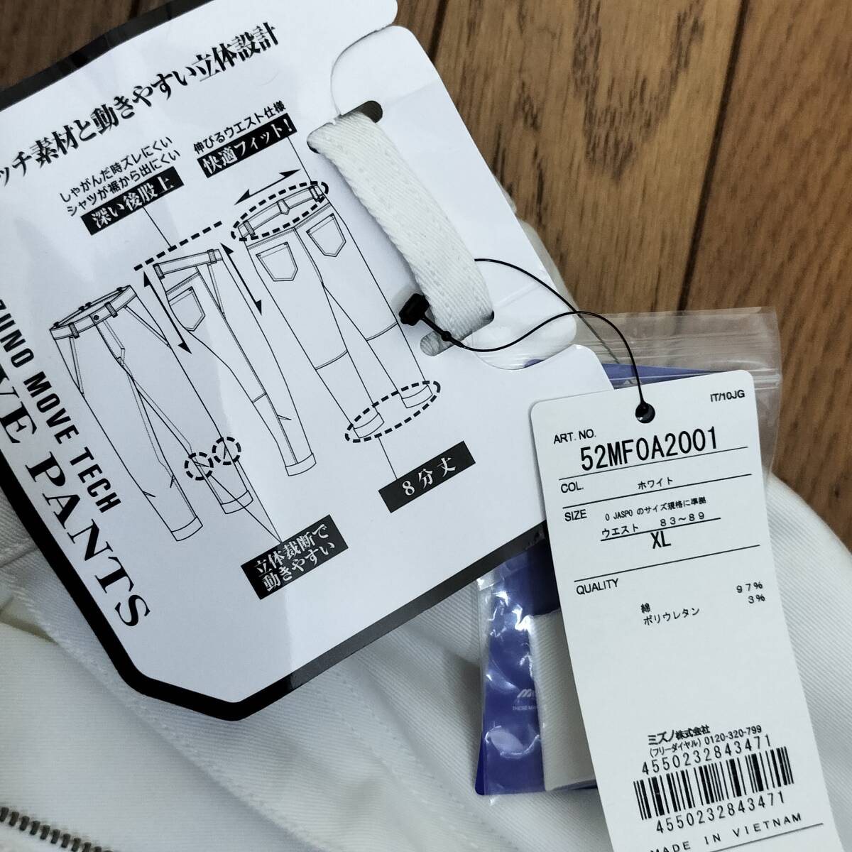 (物94) 新品 ミズノ ゴルフ 8分丈 ストレッチパンツ 52MFOA2001 ホワイト メンズXL 83~89