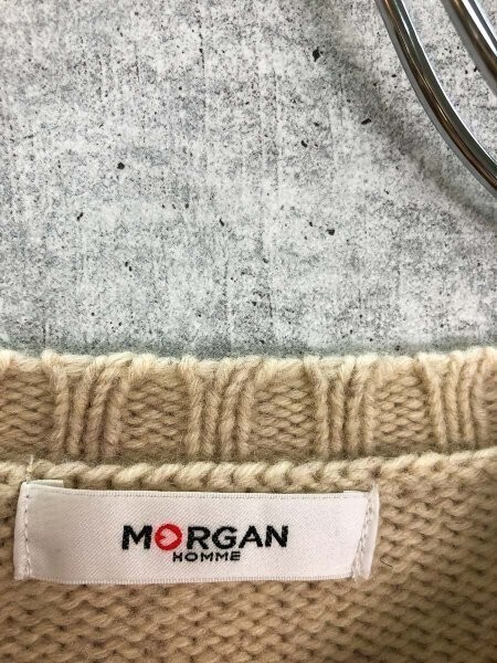 MORGAN HOMME モルガン メンズ ラグラン ウール ニットセーター 小さめ M アイボリー