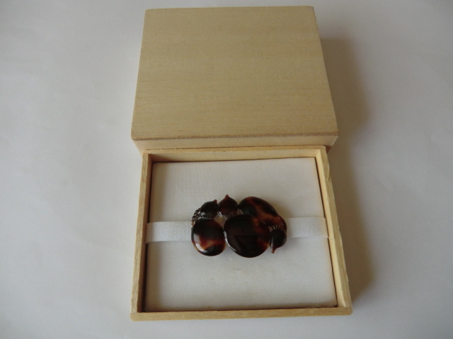 母が昭和50年代に使用していた、べっ甲の帯留めです。