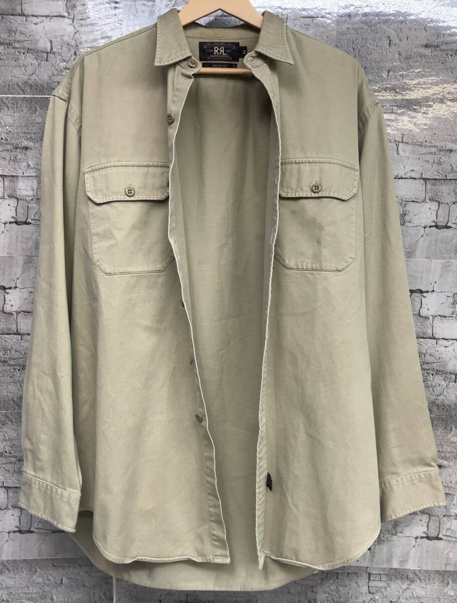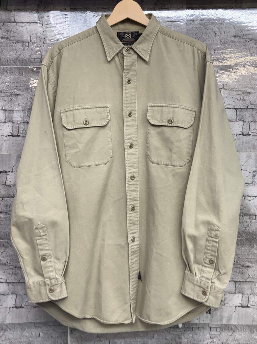 RRL RALPH LAUREN ダブルアールエル 90s 三ツ星タグ コットンツイルワークシャツ 長袖シャツ サイズM ベージュ ・襟汚れあり ・両袖に汚れあり ・背中右下に汚れあり |