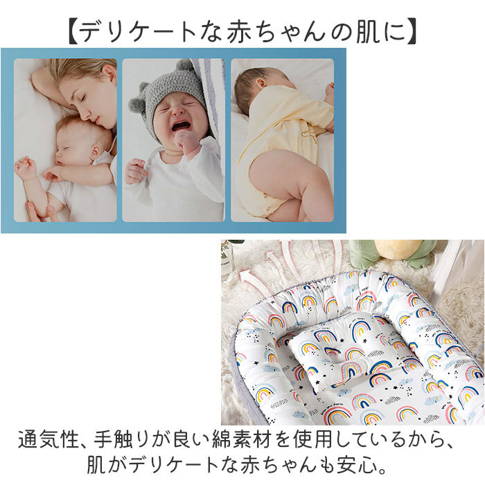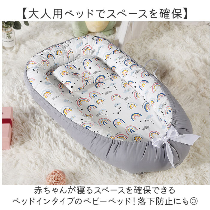 | 商品説明 | ・・【大人用ベッドでスペースを確保】 ・赤ちゃんが寝るスペースを確保できるベッドインタイプのベビーベッド!落下防止にも◎ ・【デリケートな赤ちゃんの肌に】 ・通気性、手触りが良い綿素材を使用しているから、肌がデリケートな赤ちゃんも安心。 ・【赤ちゃんの睡眠をサポート】 ・赤ちゃんの体の負担を軽減してくれる厚さのマットレス。程よい傾斜付きでより快適な睡眠。 ・【クッションガード付きで寝返り対策】 ・クッションガードは赤ちゃんの体に沿うしずくのような形で落下や寝返りがしにくいのも◎ ・【カバーの洗濯OK】 ・マットレスのカバーはファスナーで取り外しでき、定期的に洗えるのも嬉しいポイント。 ・【旅行や帰省での使用も】 ・軽く持ち運びやすいのでベビーベッドがない場所での簡易ベッドとして使える♪ |