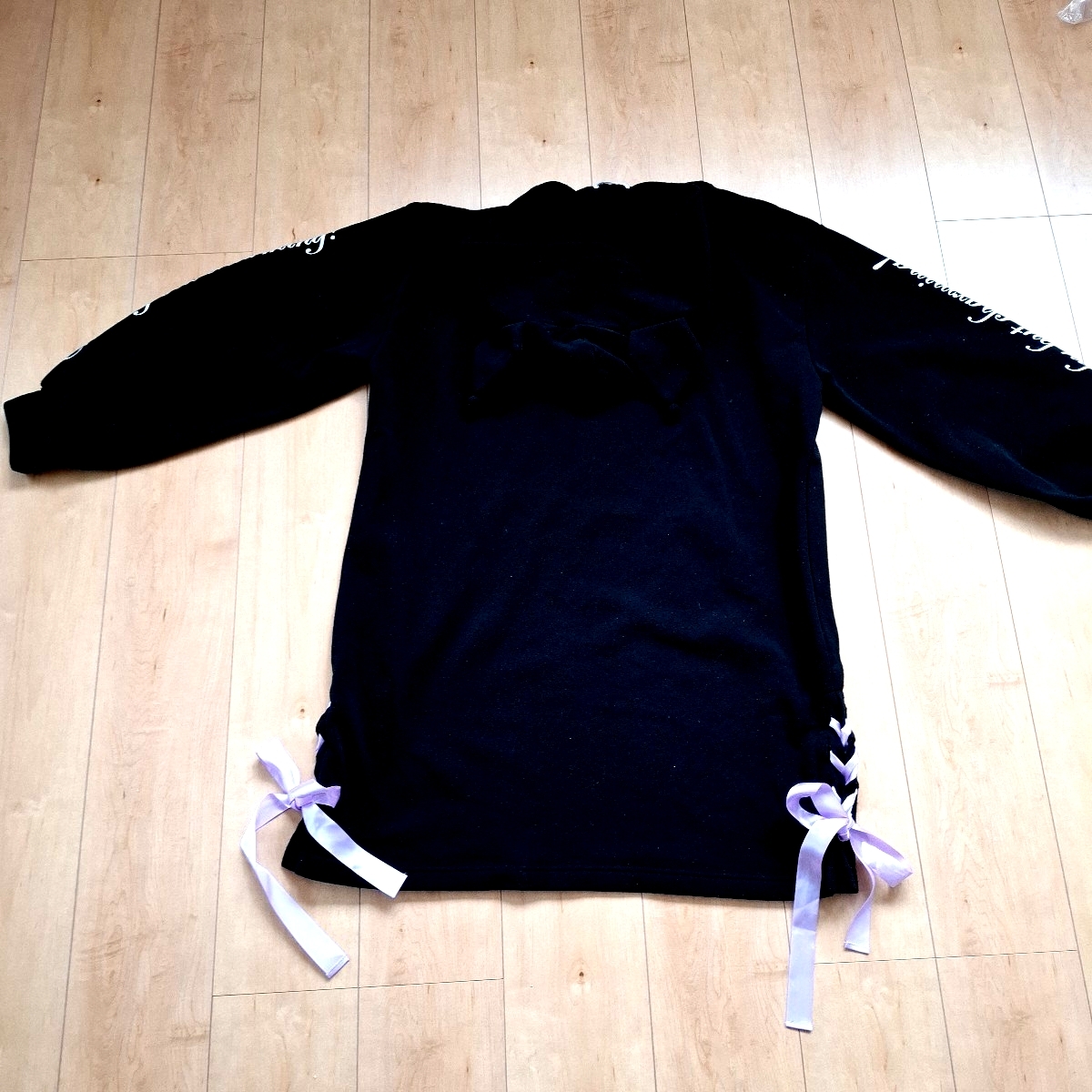 かわいい☆人気キャラクター クロミ クロミちゃんプリントパーカー ワンピース ☆ブラック 耳つきフード リボン ☆3Lです!
