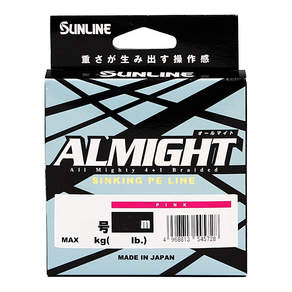サンラインの「オールマイト」は、ULT-PE素材4本と高比重繊維をコアに内蔵し、比重「1.48」を実現したシンキングPEラインです。 この設計により、ラインが浮き上がりにくく、直進性が高まり、ルアーの操作性が向上します。