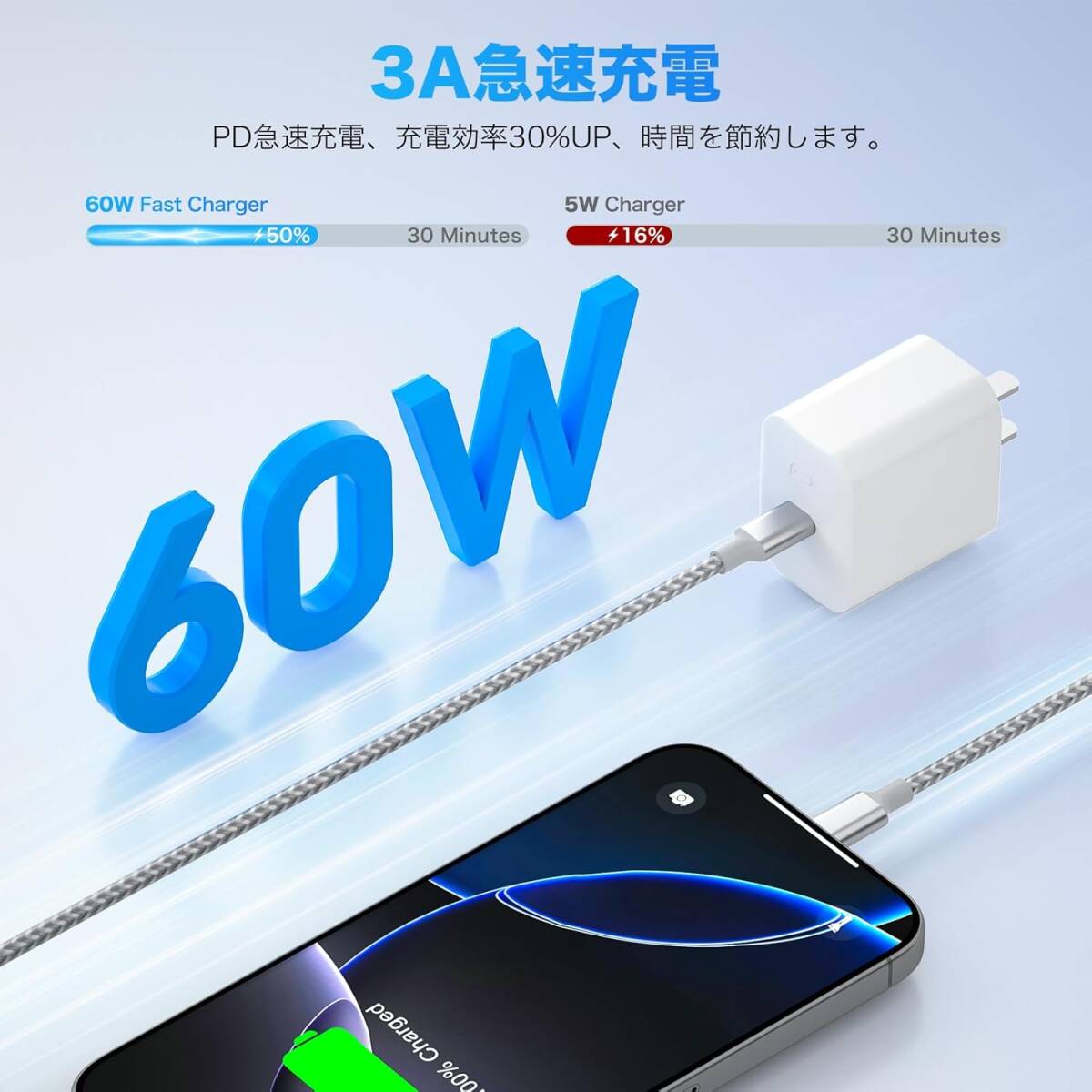 • 【最大60Wの高速充電を実現】PD(Power-Delivery)対応で最大60Wの高速充電を実現しました。60Wの電力供給に対応した急速充電をサポートしますが、PD充電を利用する場合は、デバイスとアダプタがPD機能に対応している必要があります。