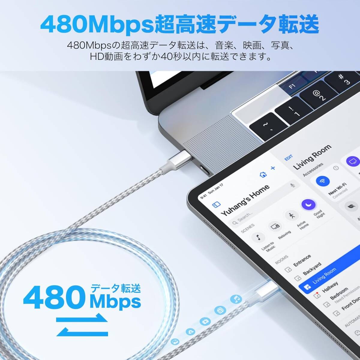 • 【幅広い互換性】Type-Cポート搭載の充電器やパソコンはもちろん、iPad Pro/Air、iPad mini6、Nintendo Switch、MacBook、HUAWEI、Galaxy、Sony、Pixelなど、Type-C対応のデバイスに接続して充電・データ転送・同期が可能です